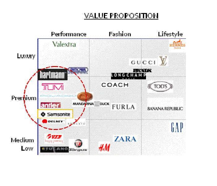 Howver, Samsonite places itself directly into the “Premium” category in contrast to Piquadro and Tumi themselves: