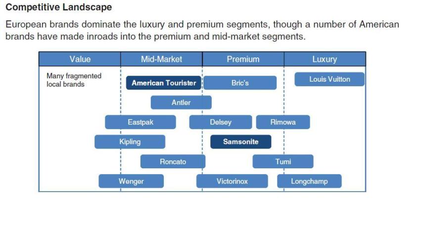 The luggage market according to Samsonite can be segmented into 3 product segments: