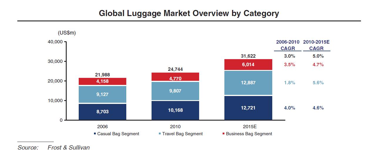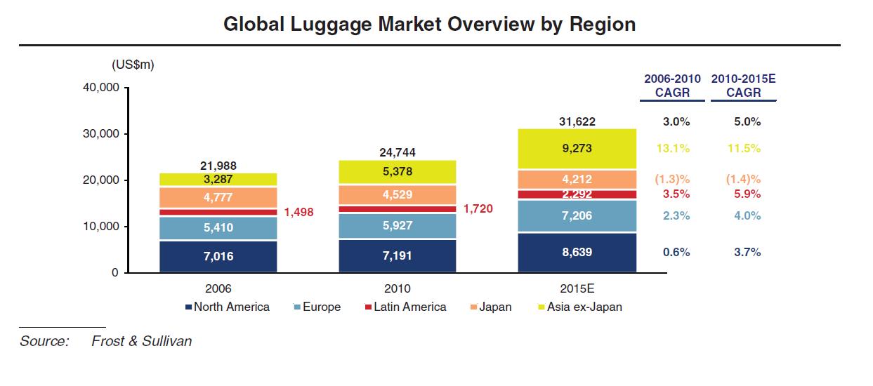 Even more interesting is the very detailed IPO prospectus of Samsonite. This is a “treasue trove” of interesting market data.