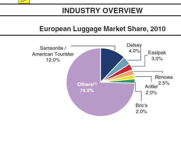 Samsonite also has an interesting “market share” slide for Europe which shows the high fragmentation: