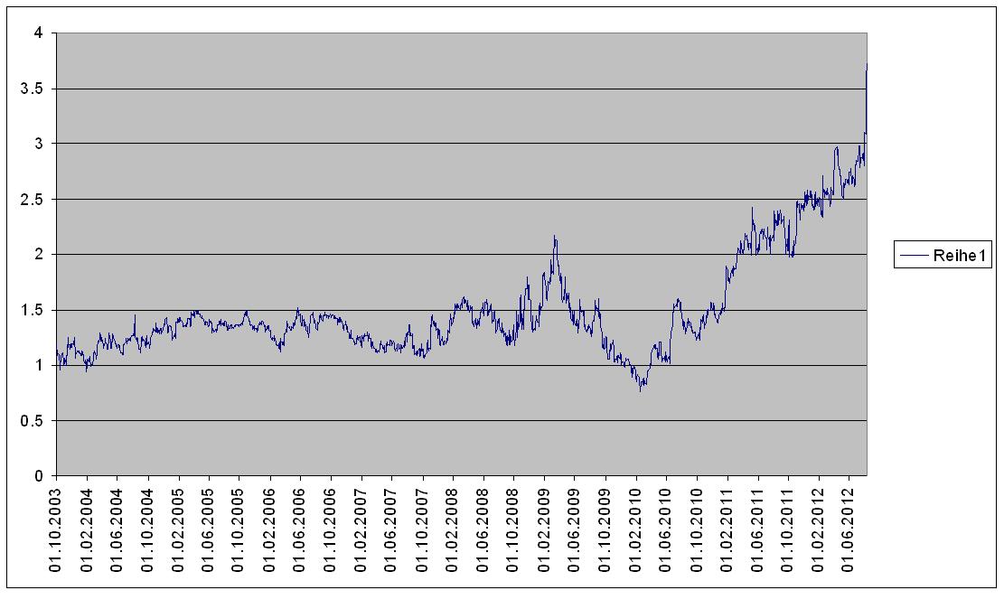 The stock used to be a “star performer” in the past, but suffered from the PIIGS crisis and is now back at 2009 lows: