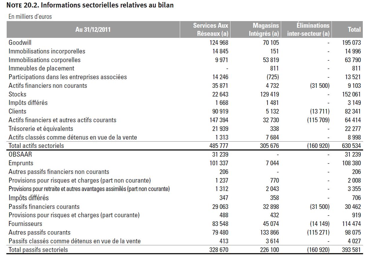 At first glance it looks like the need 160 mn of Net assets, so return on equity for this segment is not that spectacular. Howver we see that especially two position where the Franchise sectors has big asset positions, “Actifs financiers non courant” and “”Actifs financiers et autre actifs courant” are mostly consolidated out in the group, so this looks like that the Franchise sector is basically funding the own store sector.