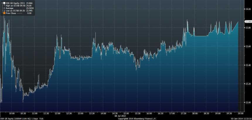 It is interesting to see that at the first day for the Osram spin off, volatility was lower and the stock price ended higher than in the beginning:
