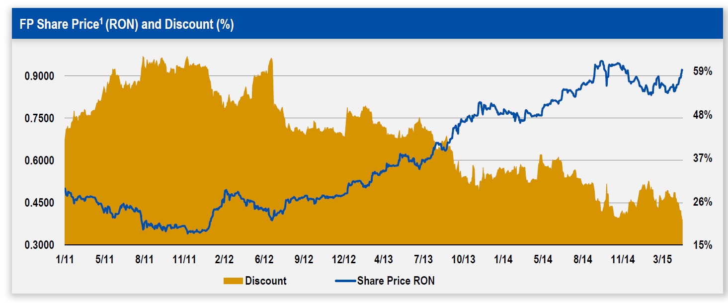 • @Valuedude – please note that FP sold Romgaz in june 2014, at a discount to the market price (5% of Romgaz was sold at 33.5 RON / share, about a 5% discount from the market price of that day).