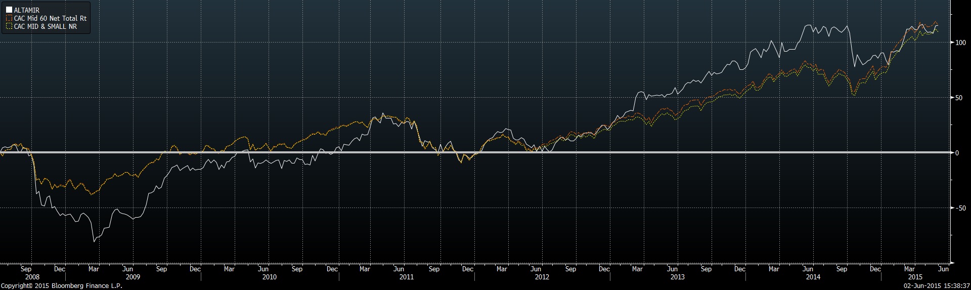 Well the performance of Altamir has been a bit patchy 2007-2009 as a few pre-crisis Investments hit the wall. The current portfolio (businesses, valuations, leverage) looks reasonable to me. Well if you pick the right small-/mid-cap stocks you might still outperform Altamir.