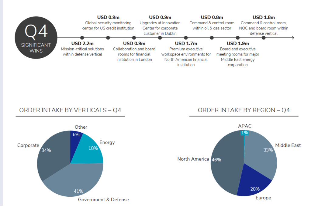 If I understand their business correctly, they establish control rooms for the defense sector as well as high quality board rooms atc around the world:
