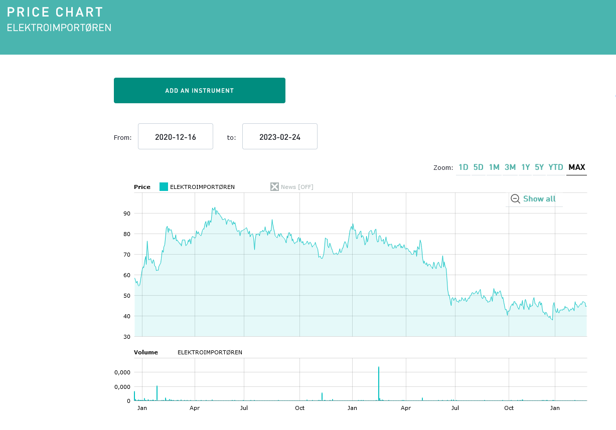 Entra is a 1,9 bn EUR market cap real estate company that mostly owns office buildings in Norway. The stock lost almost -50% from its top, similar to many other real estate stocks. I always find it hard to understand the commercial real estate KPIs like EPRA NAV and this stuff, their P&L is quite messy as the show mark-to-market gains and losses in the P&L. Real estate is something I would only consider in very specific circumstances which this is not. “Pass”.