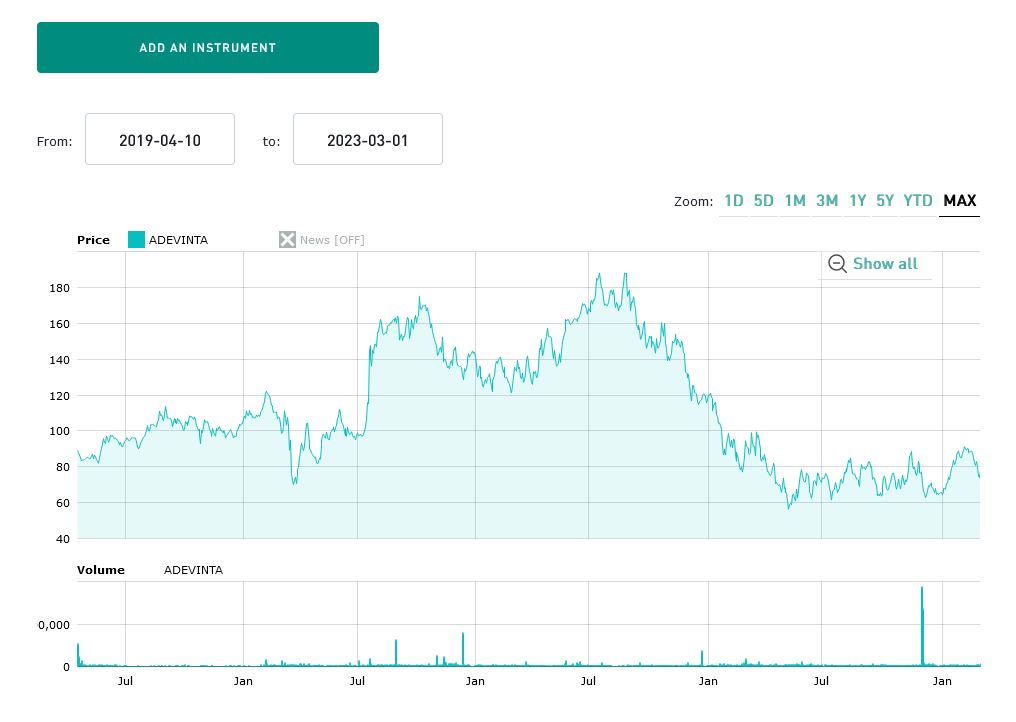 Adevinta is a 8,4 bn EUR market cap online classifieds company that was spun-off from Schibsted in 2019. Schibsted owns ~34,8% and interestingly Ebay owns almost the same amount. Looking at the chart, we can see that initially the stock perforemd very well before than suffering from 2022 on: