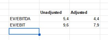 So based on on the adjustment, EV/EBITDA is a full poin lower, EV/EBIT almost 2 points.