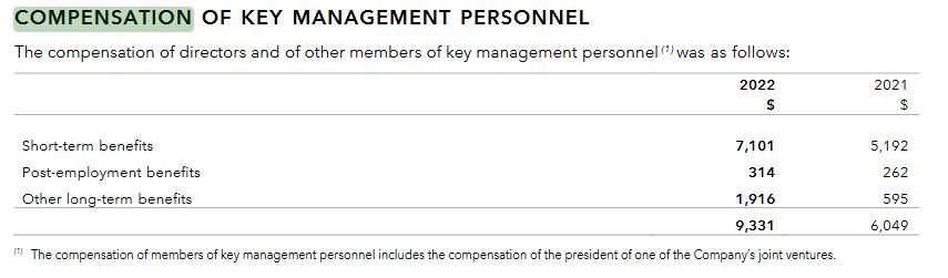 Compensation for management has increased significantly in 2022 but is still OK for a North American company