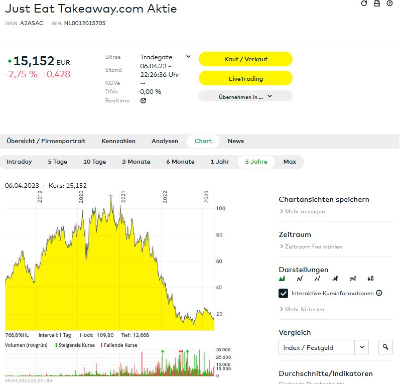 Personally, I find category a) much harder to identify and execute. Often, the share prices of the winners move quickly. In June 2020 for instance, I was of the opinion that it is already to late to go into “digital winners”. This turned out to be very wrong in the short term, as many of these stocks continued to go higher by 2x,5x or even 10x. However in the long term, this assessment wasn’t so bad. One example was Just Eat Takeaway.com (JET):