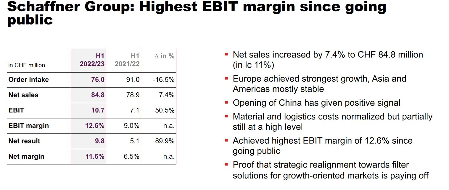 For me, Schaffner is one of the most interesting cases of a traditional business that can potentially benefit from a long growth trend towards electrification. Yes, it is a trunaround, but compared for instance to Meier & Tobler at the time of the investment, the turn around has already happened and they now “only” need to proof that this was not a one-off.