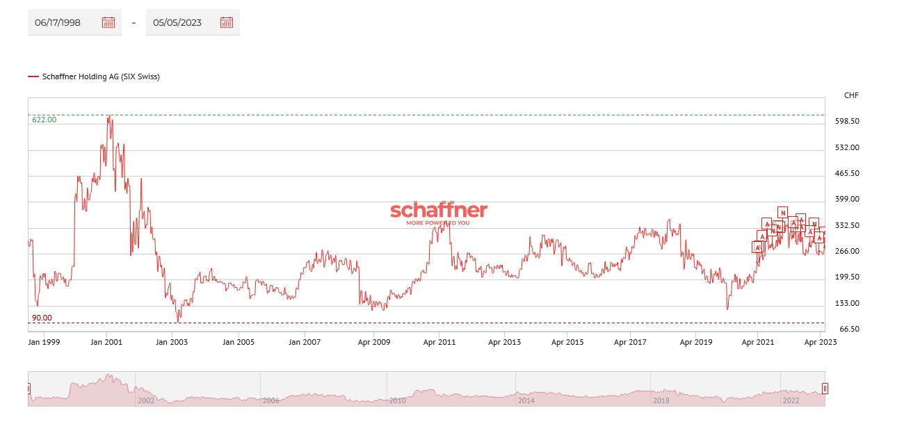 Schaffner today is trading below its IPO price of 1998 and has oscillated between 100 and 300 CHF for the last 15 years or so. So clearly, investors don’t seem to be convinced yet, that Schaffner will be on a long term success path.