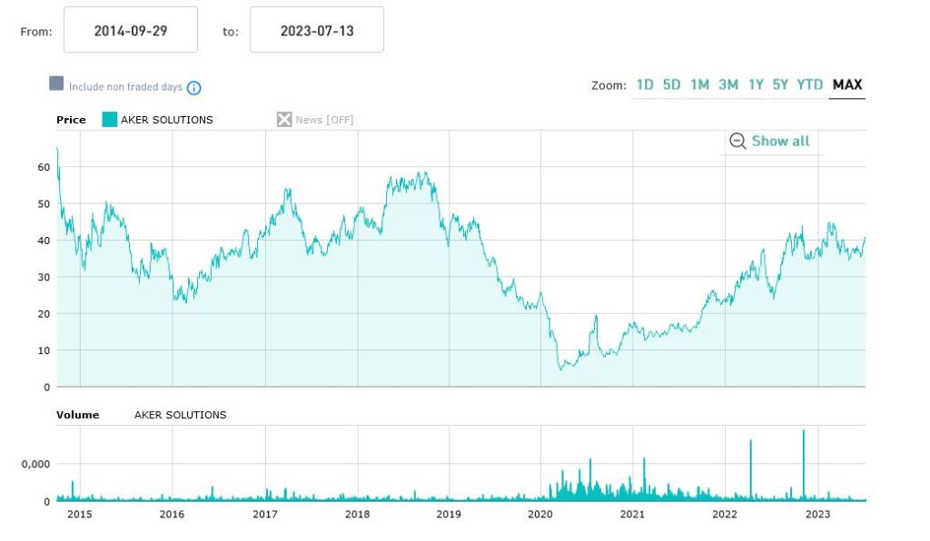 • The (re-)merger in 2020 between Kværner and Aker Solutions was part of yet another reshuffling within the realm of Kjell Inge Røkke, who had been the majority owner of both companies and their respective predecessors since the turn of the century. The names Aker and Kværner refer to illustrious historic Norwegian companies which were established in 1841 and 1853, respectively. Indeed, all the publicly listed companies in Røkke’s realm (AKAST, AKER, AKBM, AKRBP, ACC, AKH, AKSO and perhaps more … ) are heavily intertwined.