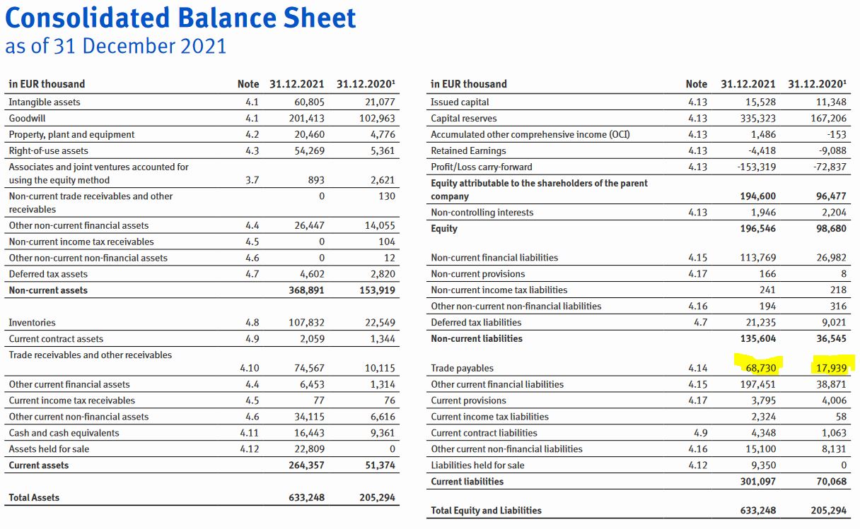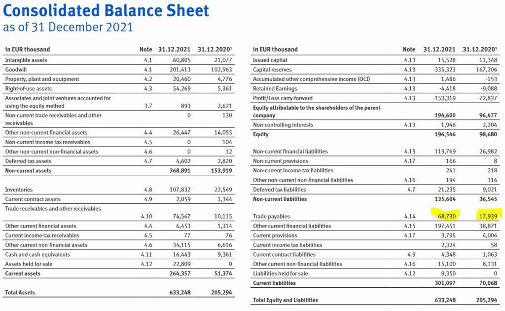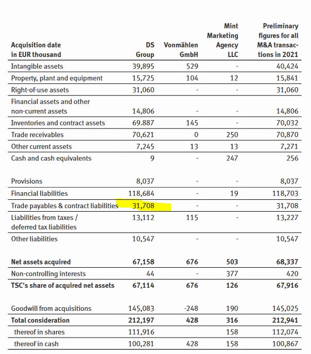 I have marked the most interesting number in Yellow: When The Social Chain consolidated DS Produkte, their trade payables position increased by almost 32 mn EUR.