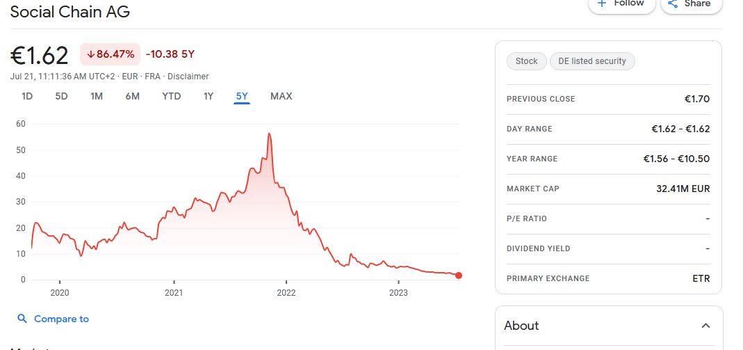 Berlin, 24. Juli 2023 – Der Vorstand der The Social Chain AG (“Gesellschaft”) (ISIN DE000A1YC996 / WKN A1YC99) ist heute nach eingehender Prüfung zu dem Ergebnis gekommen, dass für die Gesellschaft keine positive Fortbestehensprognose mehr besteht. Der Vorstand hat daher beschlossen, unverzüglich Antrag auf Eröffnung eines Insolvenzverfahrens zu stellen.