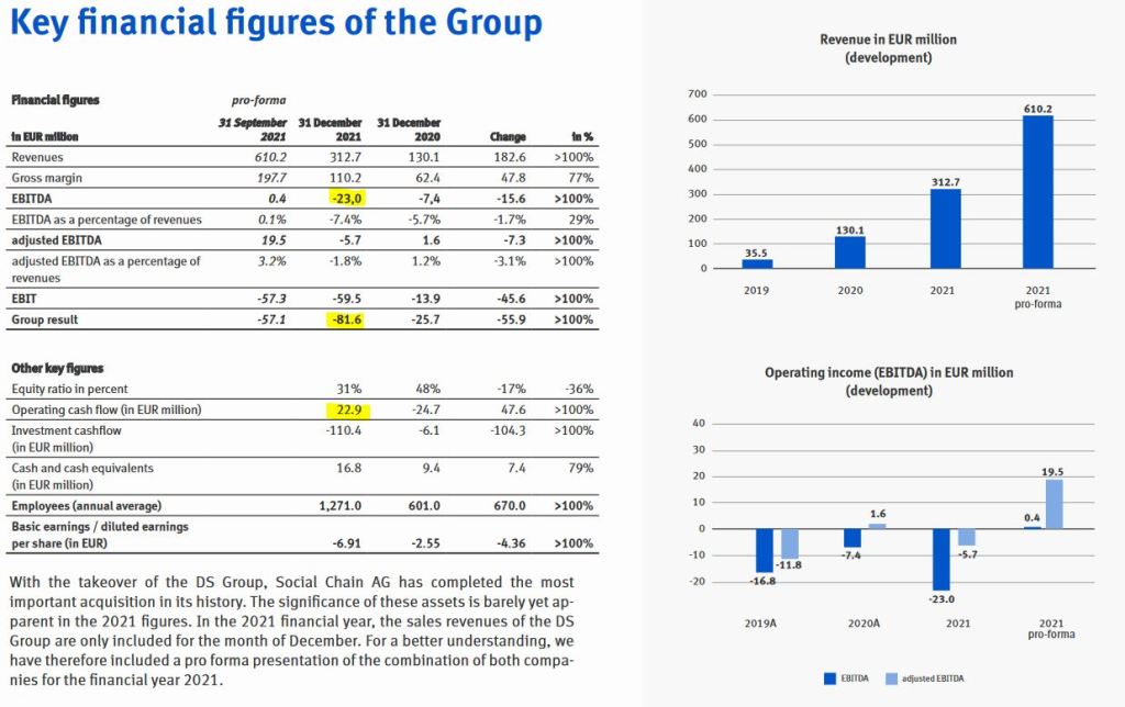Now however comes the big issue: We know that The Social Chain acquired DS Produkte and that DS Produkte has been consolidated in 2021 but not in 2020 ansd it was a significant acquisition