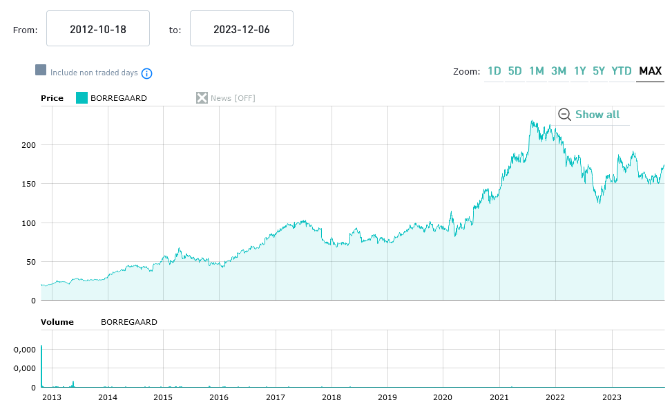 The stock is not cheap (~18x P/E) but is growing, has good margins and returns on capital. I have to admit, that I looked at Borregaard in the past at least twice. It used to be a kind of story stock with the story being “wood based plastics”. Originally, Borregaard was a plain vanilla paper mill but they seemed to have transformed themselves quite well.
