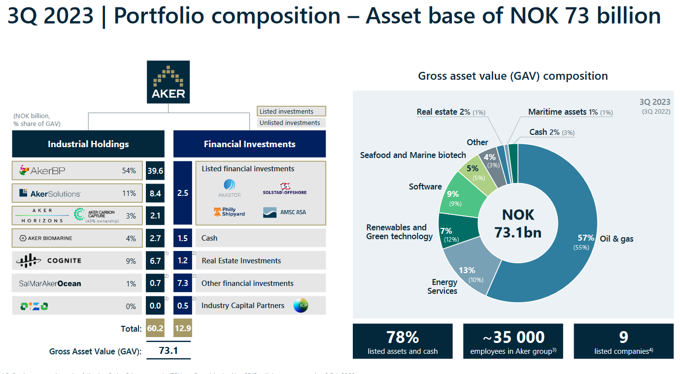 What I like about Aker is that they have very good reporting where you can easily see how the value is distributed across the Group companies. This is from the Q3 presentation: