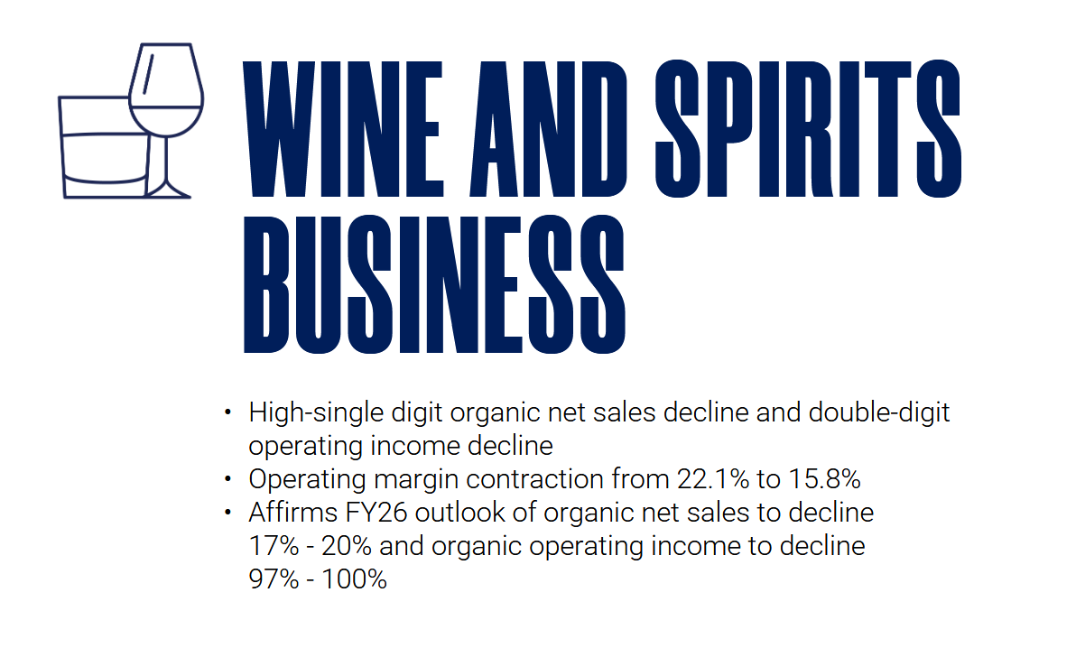 If we look at Constellation brands for instance, who presented results on the same day, the outlook for Wine & Spirits doesn’t look pretty either: