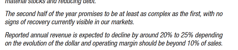 Sales down ~-25%, net profit down -33%. The only positive aspect is that the operating leverage (i.e. how much more profit declines than sales) is surprisingly modest.