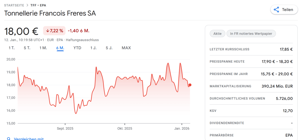 Would I buy TFF shares right now ? I don’t think so, but I won’t sell any right now either as my current exposure with around 3% of the portfolio (after the big decline) is quite low anyway. And, as mentioned in the Performance review, it forces me to review and follow the Alcohol/Spirits Sector in more detail.