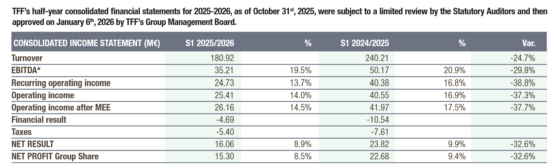 TFFs outlook for the rest of the financial year was somehow a little bit optimistic as after a -25% revenue decline in the first 6 months, they now guide for -20-25% for the full year: