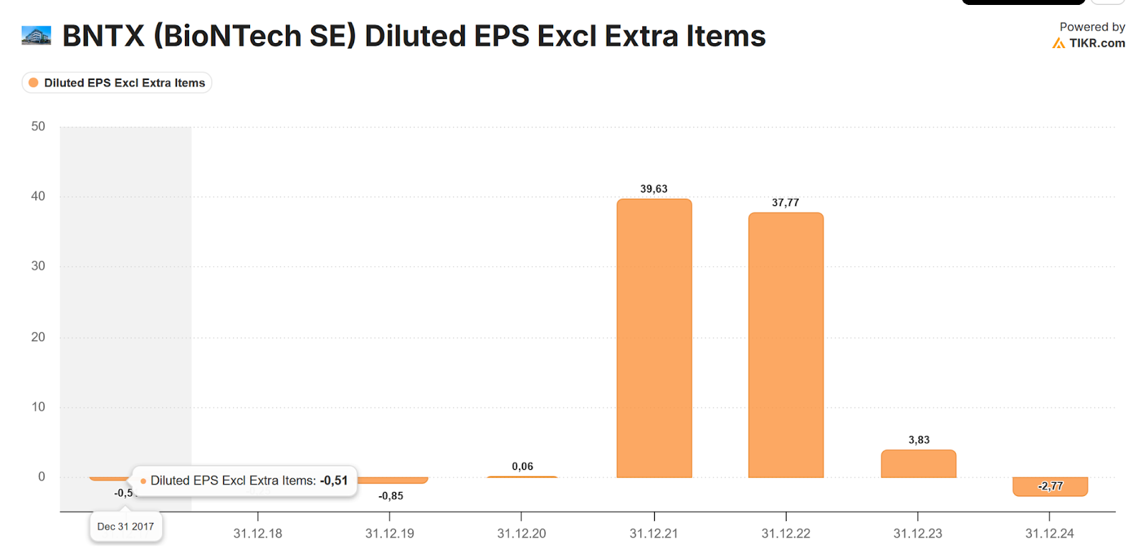 Looking at the EPS since IPO tells us that the Covid Vaccine led to 2 great years but this is clearly no indication what is going to happen in the future:
