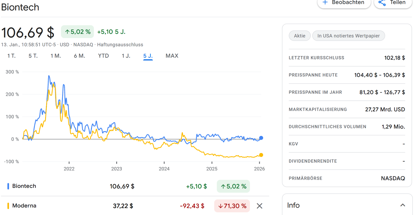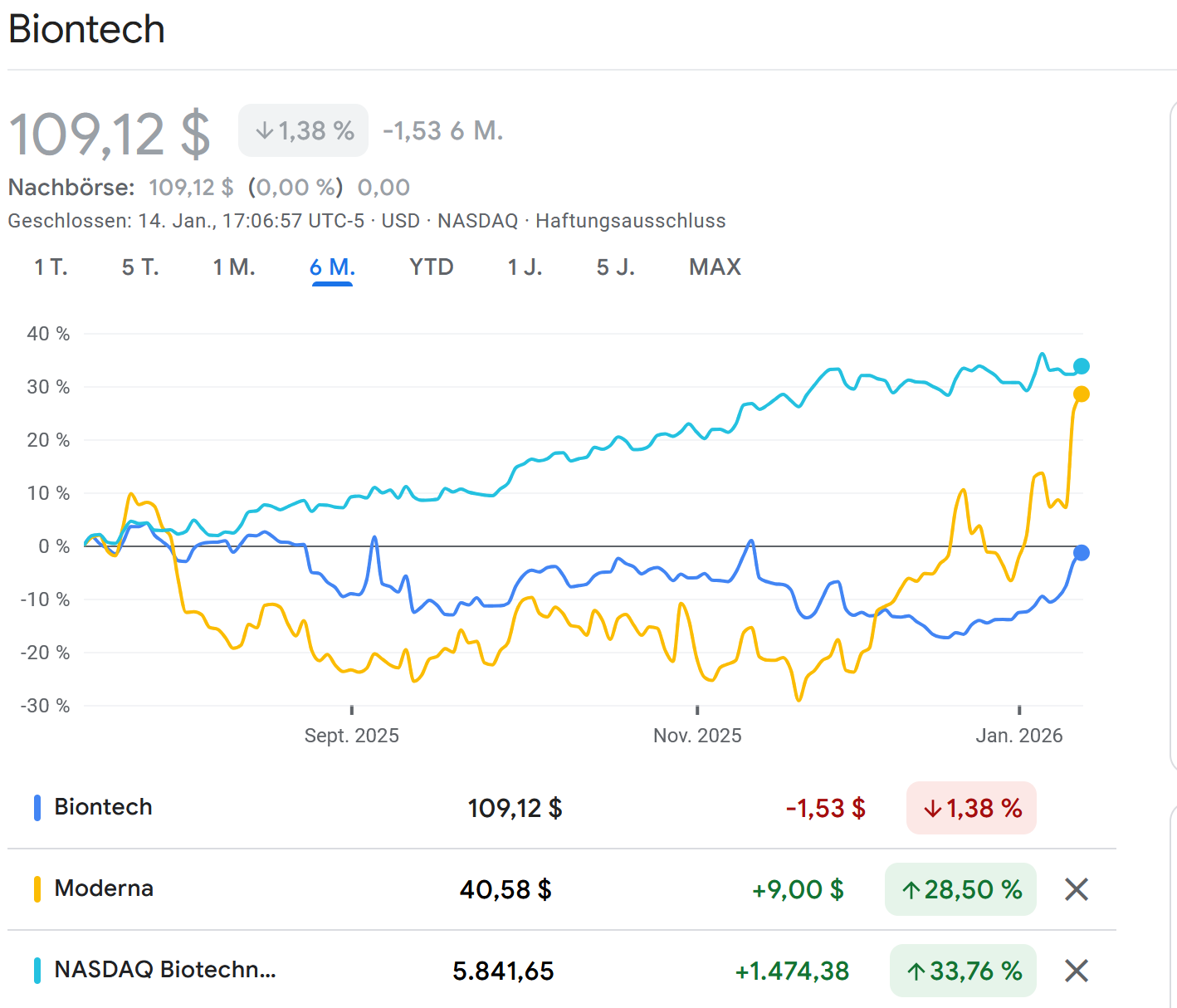 Somehow I am really tempted to do a “trade” here: Biontech looks cheap, is lagging the Biotech indices significantly and has some nice successes plus very good management.