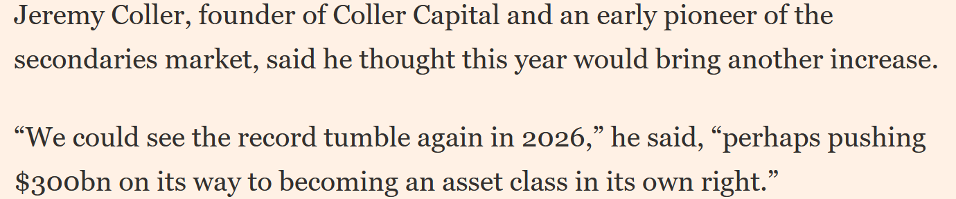 The article speculates that in 2026, the total volume of secondary deals could be up to 50% higher: