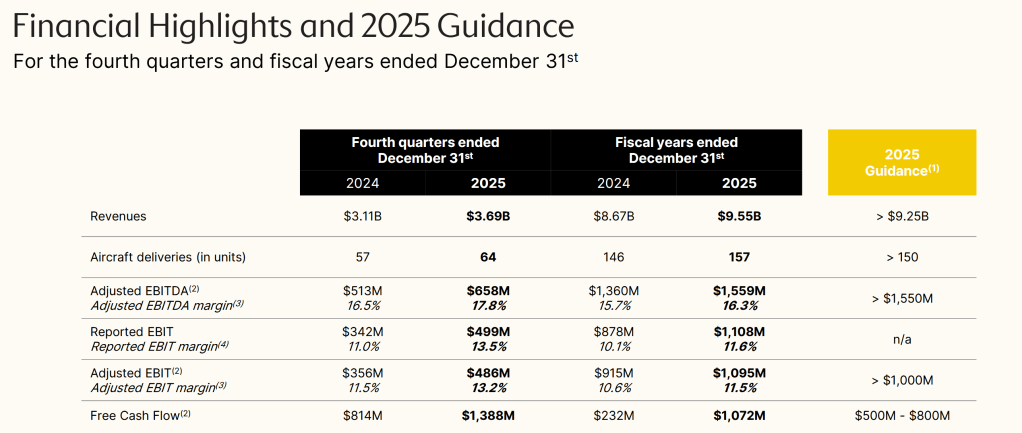 Bombardier published 2025 numbers yesterday and especially Cash flow generation was significantly above guidance: