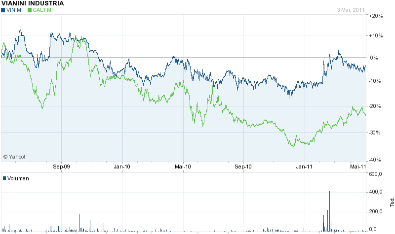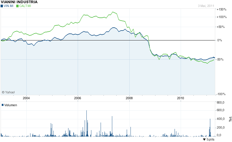 Zunächst mal zur Gesellschaft selber: Vinanini Industria ist Teil des Calatgirone SpA Geflechts. Dazu gehören u.a. Anteile an Cementir und diversen anderen Italienischen Gesellschaften. Das operative Geschäft besteht (Übersetzung durch Google) anscheinend aus der Produktion von Betonrohren und Betonschwellen, mit denen u.a. U-Bahntunnel gebaut werden. Aktuell stehen 30.1 Mio Aktien aus, bei einem Kurs von 1,42 EU ergibt das eine MarketCap von 42.75 Mio. EUR, gut 2/3 davon sind in festen Händen der Caltagirone Gruppe.