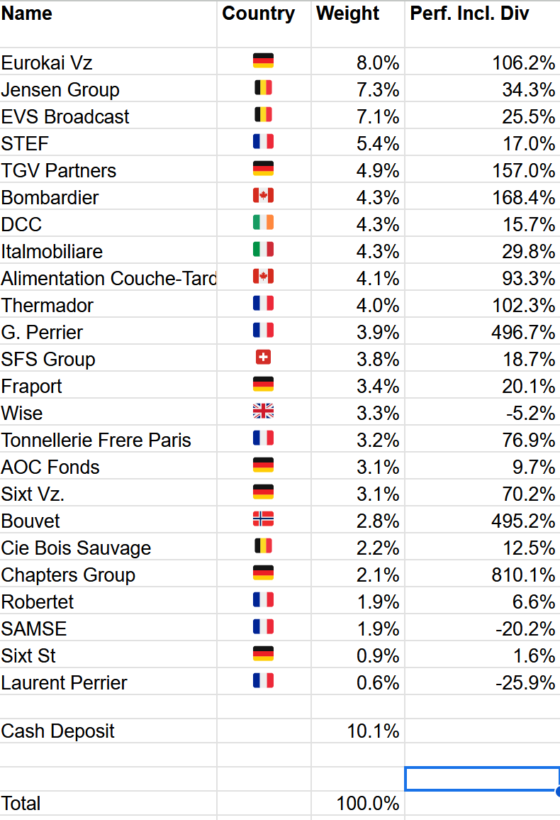 The above table is not meant to present performance as a whole. As the headline says it shows the current portfolio.